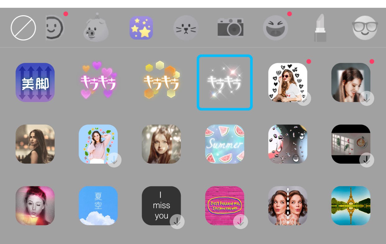 - いろいろなエフェクトが出てくるので星のマークのエフェクトを選択します。