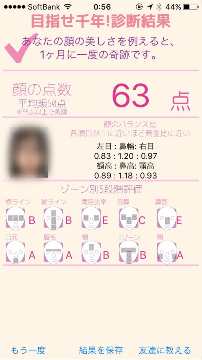 最近、可愛いアイドルを象徴するキャッチコピーとして「〇年に一度」とよく表現されていますよね。では、あなたの顔は何年に一度なのでしょうか?そんな疑問に答えてくれるアプリが、「何年に一度?美顔診断カメラ」です。顔の黄金比に基づいた細かい診断が魅力的。診断結果には全体的な点数だけでなく、縦ラインや口元などゾーン別の結果も表示されます。顔のバランス比も確認できるなんて、なかなかできない経験ですよね。友だちと一緒に楽しんでもよし!自分だけでじっくり診断してもよし!暇つぶしにピッタリのアプリです。