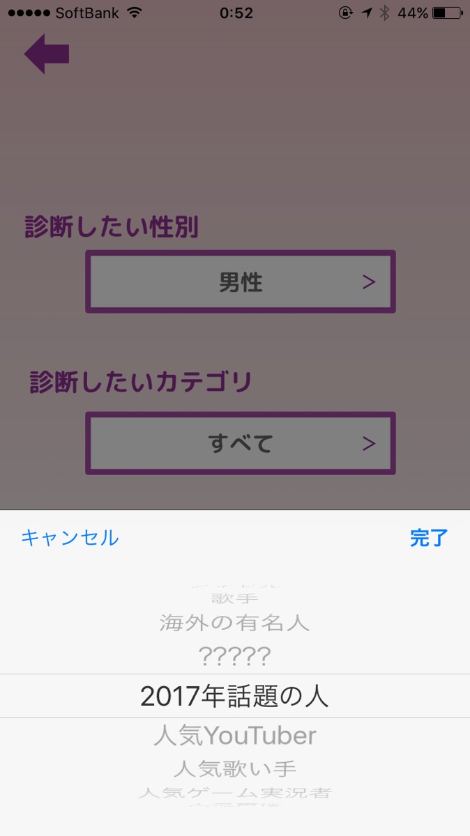APPストアの総合ランキングで1位になったこともある人気アプリ、「顔を診断するアプリ『診断カメラ』!!」。性別とカテゴリーを選択してから顔を撮影すると、国内の芸能人だけでなく海外セレブやYouTuberの中から誰に似ているのか教えてもらえるアプリです。芸能人の誰に似ているのか教えてくれるアプリは多いのですが、その中でも「顔を診断するアプリ『診断カメラ』!!」は診断できる有名人の数やカテゴリーの多さが魅力的。「その年話題を集めた人」や「人気ゲーム実況者」など幅広いジャンルを制覇しています。