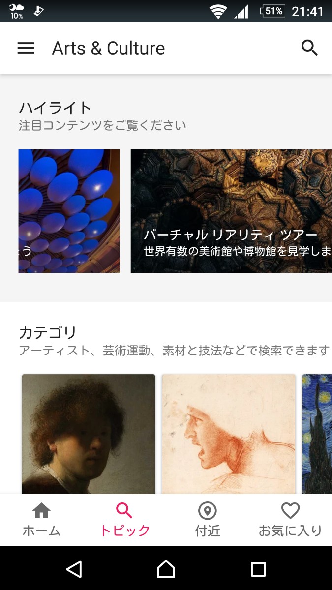 「Google Arts & Culture」は、世界各国の美術館に展示されている作品を鑑賞できるのはもちろんのこと、世界遺産の風景まで楽しむことができるアプリです。スマホの画面で作品を見るのに抵抗がある方も多いのではないですか?しかし、このアプリはスマホの画面をズームした場合でも、筆のタッチなど細部まで鑑賞することができるのでおすすめ。ストリートビューを使い、美術館の内部や世界遺産を楽しむことができるのも魅力。まるでその場所にいるような気分を味わえます。