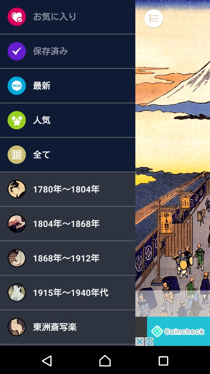 「浮世絵壁紙」は、伝統的な日本の美しい浮世絵の数々を楽しむことができるアプリです。なんといっても、浮世絵独特の色鮮やかな色彩が目を引き、情緒ある風景を堪能することができます。このアプリには、500枚もの浮世絵作品が用意してあるのも魅力。浮世絵作品は、スマホの待受として保存することもできます。年代や作者の名前で検索することも可能で、豊富な種類の浮世絵作品の中から簡単に見つけることができるので気になった作者の他の作品を調べるのにも便利です。